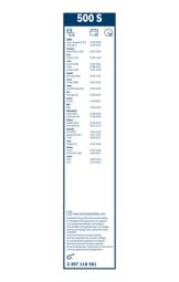 Jednostka miary : Komplet Spojler : ze spojlerem Długość 1 [mm] : 500 Długość 2 [mm] : 500 Rodzaj wycieraczki : Pióro wycieraczki przegubowe (tradycyjne) ze spojleremZastosowanie